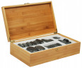 Набор массажных камней СПА-25 состоит из 10 камней. Камни оказывают благотворное влияние на биологически активные точки организма. Вулканический камень используемый в этом наборе – это черный базальт, который формировался на склонах вулканов и содержит элементы четырёх стихий - огня, воды, воздуха и земли. Базальт отличается тем, что хорошо держит тепло, таким образом позволяет эффективно проводить стоун-терапии.