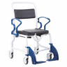 Материалом для сидения и спинки служит прочный пластик. Он не деформируется и не трескается. Модель имеет откидное сидение, а также специальные ремни безопасности. Они также выполнены материалов, не вызывающих аллергии или телесного дискомфорта. Модель отличается достаточно компактными размерами, что позволит использовать его даже там, где нужно рационально использовать пространство. Кресло крепится к стене. Его легко чистить и мыть благодаря гладкой поверхности, отсутствию лишних деталей. Также модель можно обрабатывать дезинфицирующими средствами.
