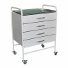 - Опоры поворотные, самоориентирующиеся колеса, с ободом из полипропилена и шинкой из серого полиуретана, не оставляют следов на полу, все оснащены тормозом