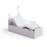 В центральной части кровати расположен мягкий сегмент матраса, который отодвигается, открывая доступ к увеличенному санитарному устройству. По периметру санитарного проема предусмотрен специальный защитный бортик, предотвращающий расплескивание жидкости и обеспечивающий гигиеничность процедуры.