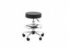 Стул круглый на хромированной стальной раме в форме пятилучия, оснащенный колесами и регулировкой высоты, при помощи газ-лифта.